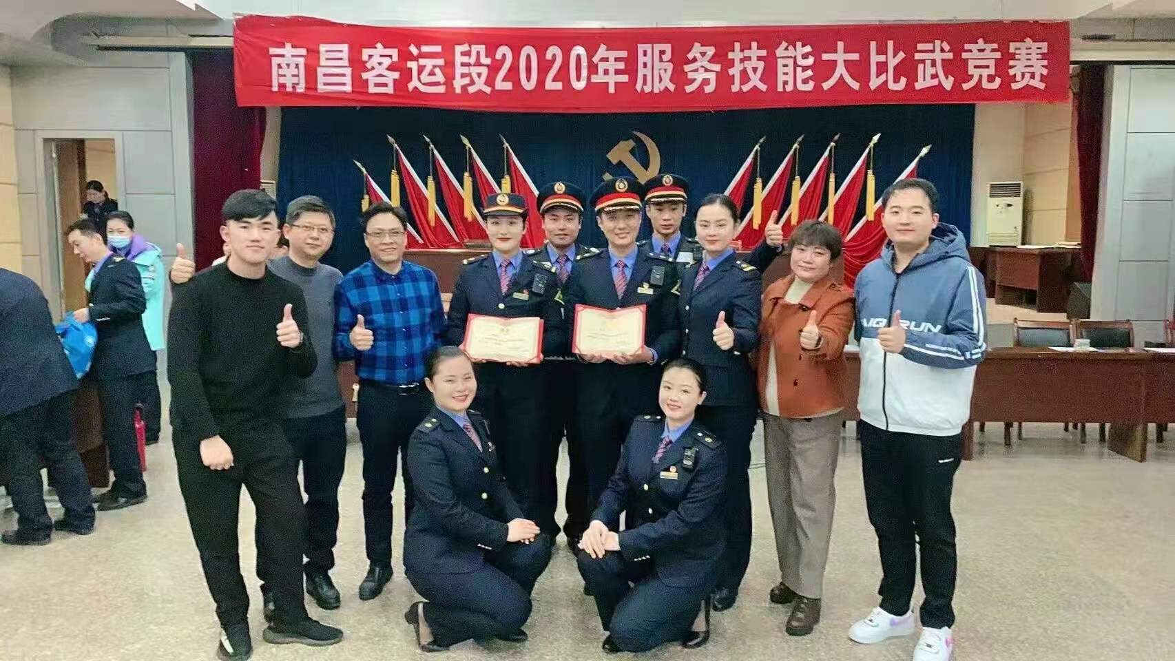 南昌客运段2020年服务技能大比武竞赛(动车组),我校毕业生在他们队两个班组分别获得第一名和第二名的好成绩。